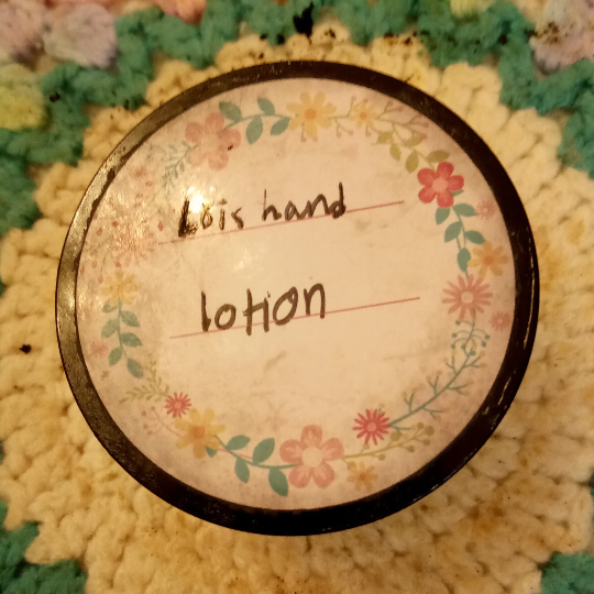 This is my sister Lois' homemade hand lotion made from baby lotion, vitamin E lotion, and vaseline. It is 4 oz. for $4.00 or you can purcchase two for $7.00. I believe you will really like it. I sure do!